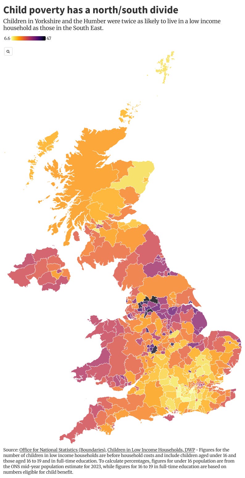 Nearly half of children in Pendle (47 per cent) are in poverty before housing costs. In Richmond Upon Thames, it’s just 7 per cent.