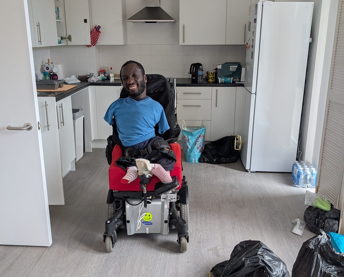 Isaac was born with a disability called limb-pelvis hypoplasia/aplasia [LPHA], which means he has no arms and short legs. He needs adaptive housing and ongoing care in order to live his life with dignity. At the beginning of 2025, Isaac became effectively homeless after his mother – who was then his primary carer – had to leave the country for three weeks. Despite repeatedly asking Redbridge Council for extra support to cover his needs during his mother’s absence, help was not provided in time.