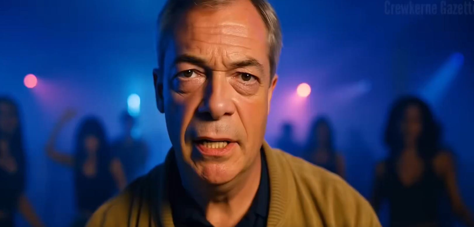 For an apolitical “satire” page, the Gazette goes surprisingly easy on Nigel Farage, making videos such as “Nigel In The Rave” and supporting his anti-immigrant stance. As recently as December 2025, the Crewkerne Gazette posted a video featuring an AI-generated young punk Farage making light of allegations of antisemitic bullying while he was at school. Farage for his part has posted at least one of Bonehill’s videos, calling it “a little bit of fun”. Will he delete the post now it’s clear the “little bit of fun” is an endorsement from a Nazi propagandist? ■