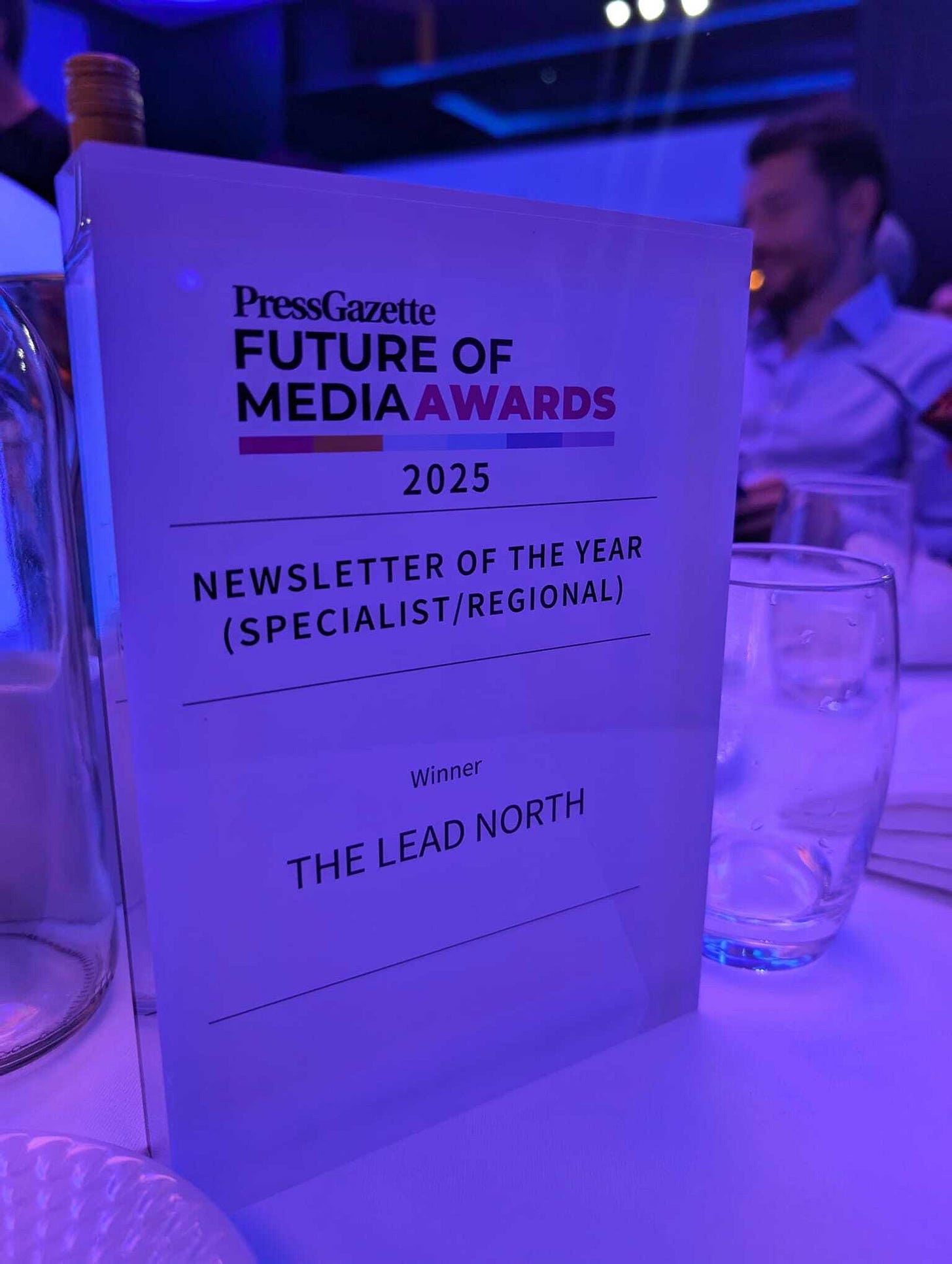 Press Gazette's Future of Media Awards crowned The Lead North as the winner of the best specialist/regional newsletter of the year.